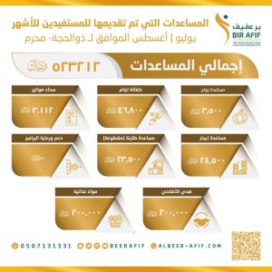 لـ Afifalbr | 11/09/2023 | الاخبار | المساعدات المقدمة من الجمعية لمستفيديها خلال الأشهر يوليو واغسطس 2023م المساعدات المقدمة من جمعية البر الخيرية بعفيف لمستفيديها خلال الأشهر ( يوليو ، اغسطس) 2023 م الموافق لشهري (ذو الحجة ، محرم) 1445 هـ. اعلان نتائج الترشيح مشاركة جمعية البر الخيرية بمحافظة عفيف في الاحتفال باليوم الوطني 93 طرح إستثماري تعلن جمعية البر الخيرية بمحافظة عفيف عن رغبتها في طرح إستثماري للمبنى الواقع خلف المحكمة العامة بعفيف والمبنى الواقع... طرح إستثماري اقرأ المزيد فتح باب الترشح لمن يرغب من اعضاء الجمعية العمومية يسر مجلس الادارة بجمعية البر الخيرية بمحافظة عفيف عن فتح باب الترشح لمن يرغب من أعضاء الجمعية العموميه ممن تنطبق عليه... فتح باب الترشح لمن يرغب من اعضاء الجمعية العمومية اقرأ المزيد رئيس وأعضاء مجلس إدارة جمعية البر الخيرية بعفيف يهنئون القيادة الرشيدة بحلول شهر رمضان المبارك ... رئيس وأعضاء مجلس إدارة جمعية البر الخيرية بعفيف يهنئون القيادة الرشيدة بحلول شهر رمضان المبارك اقرأ المزيد