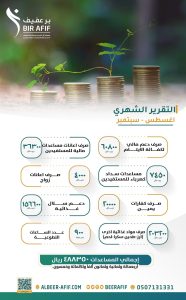 بفضل الله ثم ثمرة بذلِكم وعطائكم، #جمعية_البر_الخيرية_بعفيف تسعد بمشاركتكم تقرير مشاريعنا لخدمة الأسر المحتاجة. لشهري ( أغسطس – سبتمبر 2024م ) نسأل الله أن يتقبل من كل من ساهم ودعم، وكتب الله لكم الأجر وأخلف عليكم خيرًا 🍃