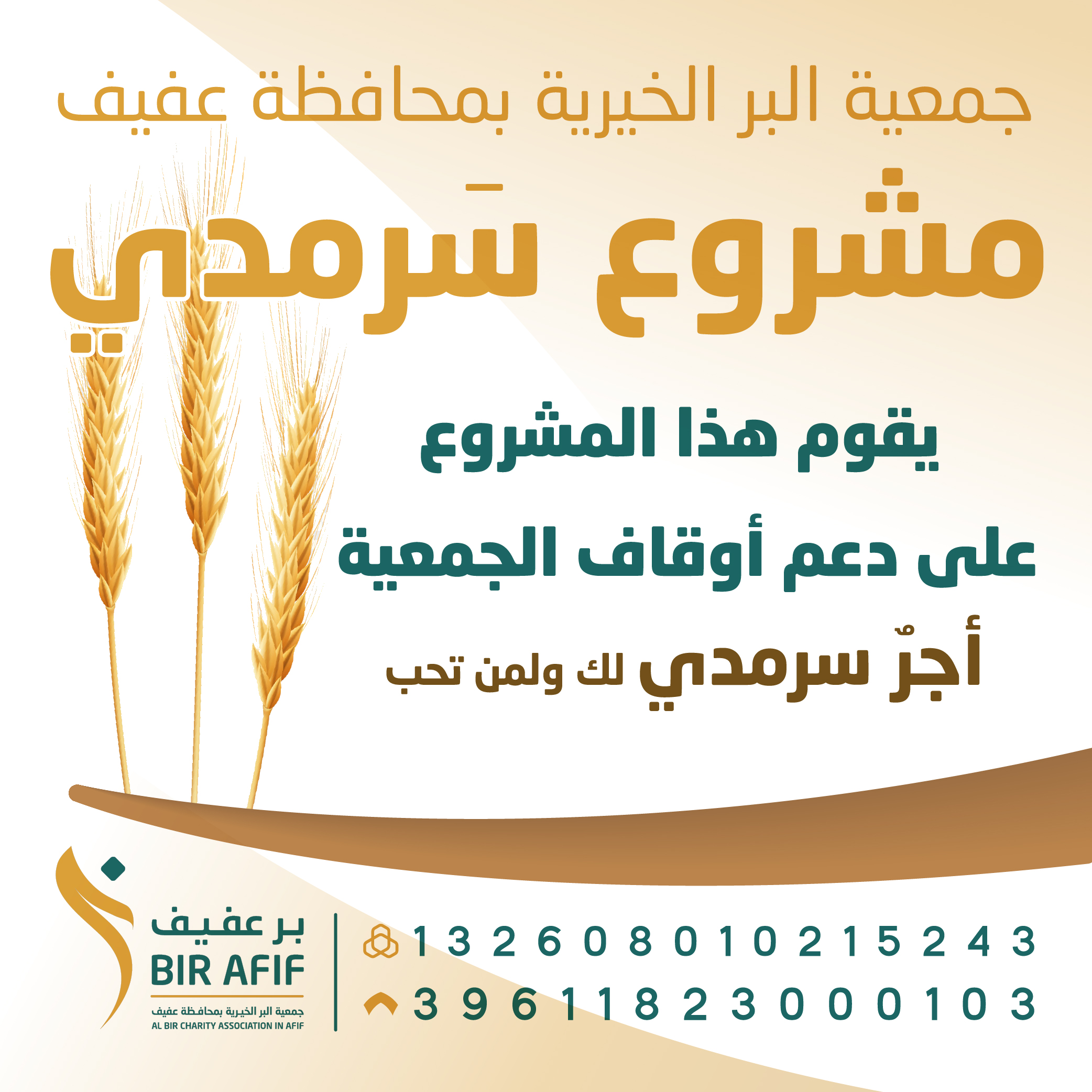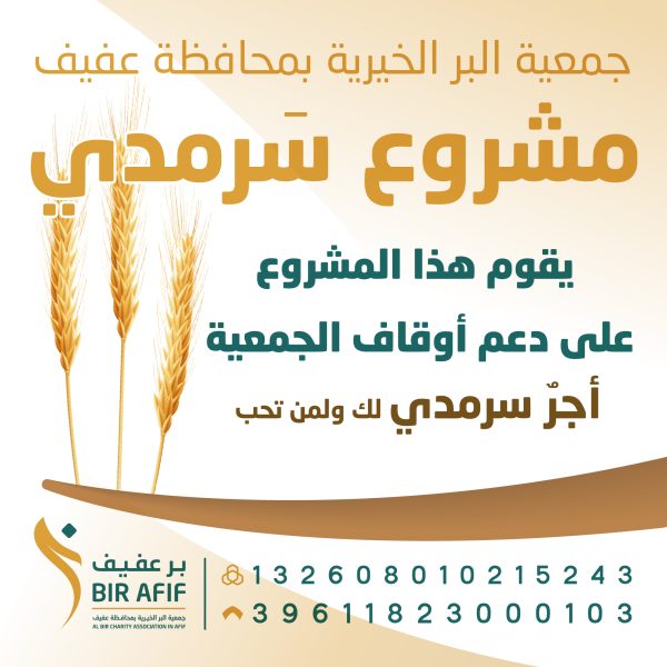 في مشروع سرمدي لدى جمعية البر الخيرية بعفيف ينصب تبرعك في حساب اوقاف الجمعية